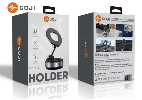 هولدر Goji مدل G3 یک پایه نگهدارنده موبایل همهکاره است که با استفاده از فناوری جذب مغناطیسی قوی (Powerful Magnetic Adsorption) و مکش (Vacuum Suction)، گوشی شما را ایمن و پایدار نگه میدارد.